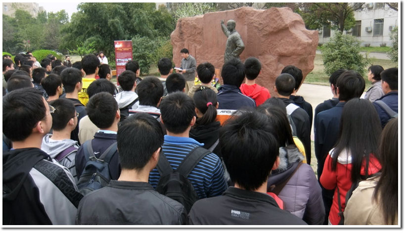 正值清明时节,又逢钱学森先生诞辰一百周年,为了缅怀先生,继承先生遗志,弘扬先生精神。由工程科学学院分党委主办,工程科学学院分团委承办的“钱学森百年诞辰纪念活动之缅怀先师”活动于4月2日中午12:00在西区钱学森先生铜像前举行,历时1个小时。