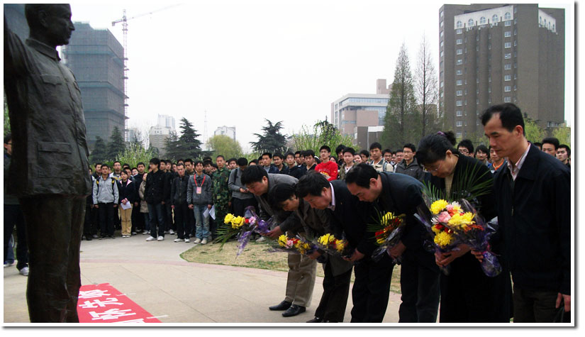 最后,到场的老师们、同学们依次有序走到钱老的铜像前献花、鞠躬,以表达我们深深的追思与敬意。
