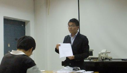 成员培训的开始先将新成员分成三组,并给出不同的模拟活动项目,要求在20分钟内完成一份团学活动项目实施计划书,各位评委根据自己的经验,从计划书的完整性、组织构想的可行性与创新性、经费预算和时间进度的合理性、项目组成员组成及分工的合理性等方面进行评判打分,并做以适当点评,项目组成员亦相互之间提出了一些自己的观点和看法。整个培训过程中既有激烈的探讨与辩论,又有虚心的指导与请教,场面热烈又祥和。