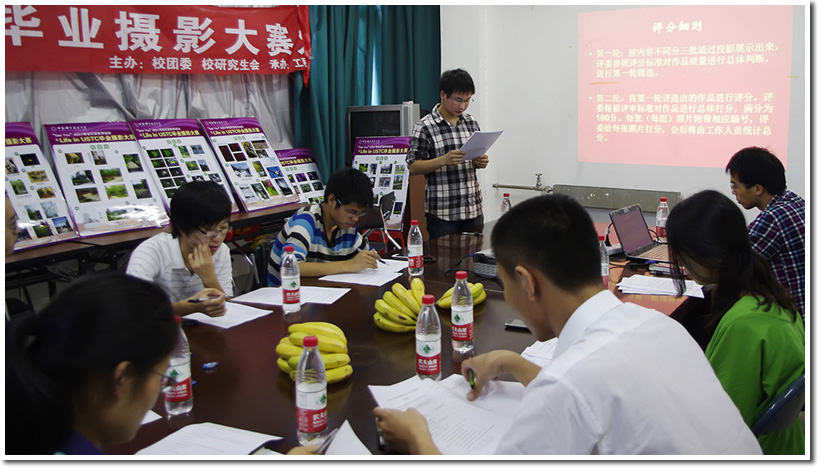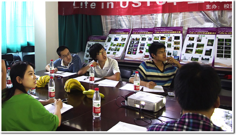 5月31日下午,“See You” 2011 毕业纪念系列活动之Life in USTC 毕业摄影大赛作品评审会在校团委会议室举行。担任评委的嘉宾有校团委杨晓果老师、校研究生会主席贺承浩、校研究生会常委申屠国樑、校研究生会文体部部长张雁冰、摄影协会会长刘冬宇、副会长王世睿等6人。评审会一开始由主持人毛世鑫介绍会议议程,然后项目负责人林兰介绍摄影大赛的总体情况及目前进展。