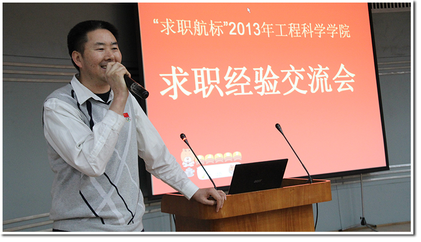 2013年4月19日晚18:30由校团委、校研究生会、招生就业处主办,工院分团委、工院研究生会承办,“所系结合”办公室协办的“求职航标”2013年工程科学学院求职经验交流会在西活二楼必威最新 厅拉开帷幕。活动针对整天奔波于实验室和教室之间并对自己的职业生涯充满困惑的学生开展,同学们积极参与、热情高涨、现场十分火爆。到场的嘉宾有就业政策咨询与职业规划指导的郝心远老师、5系博士毕业生牛玉、9系硕士毕业生黄铭、9系本科毕业生陶玮玮、13系硕士毕业生朱会元、13系硕士毕业生周锦志。活动由项目组成员叶冬森主持。
