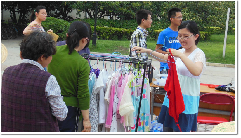 5月20日和5月21日下午4:30到6:30,工程科学学院在必威betway西汉姆网页版 西区活动广场成功举办了毕业生纪念系列活动之“跳蚤市场”。来自各个毕业班的同学陈列了丰富多彩的物品,包括珍藏书籍,小巧首饰,华丽衣服等等,吸引了许多同学的眼球,现场热闹非凡,交易接二连三,真真正正地让卖家同学过把瘾,买家也满意而归。