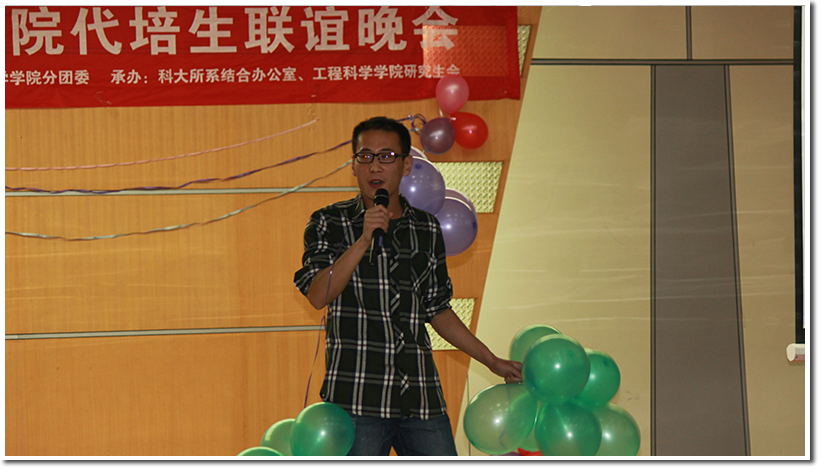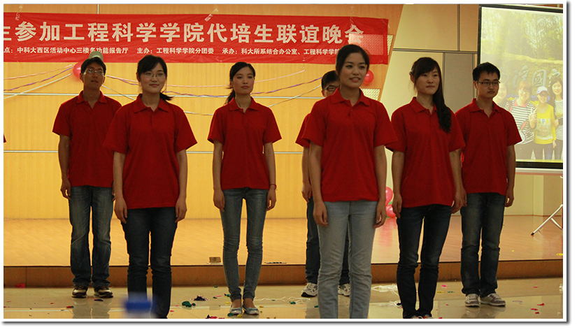 2013年5月27日晚上,工程科学学院“代培生联谊晚会”于西区活动中心三楼圆满举行。为了丰富科大工院代培生们的课余生活,促进同学们之间的友谊,科大工程科学学院分团委携手科大所系结合办公室及工程科学学院研究生会合力举办了此次“代培生联谊晚会”。晚会开始前就吸引了很多代培生及我校其他师生的早早到来,提前到场的观众还可能得到一份精美的小礼品。晚上6点半,两位主持人着盛装宣布了此次晚会的开场,更加点燃了现场的活跃气氛。