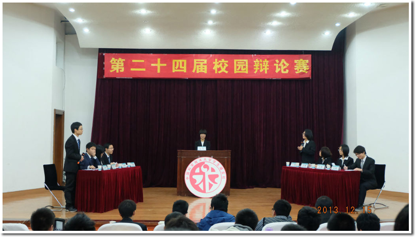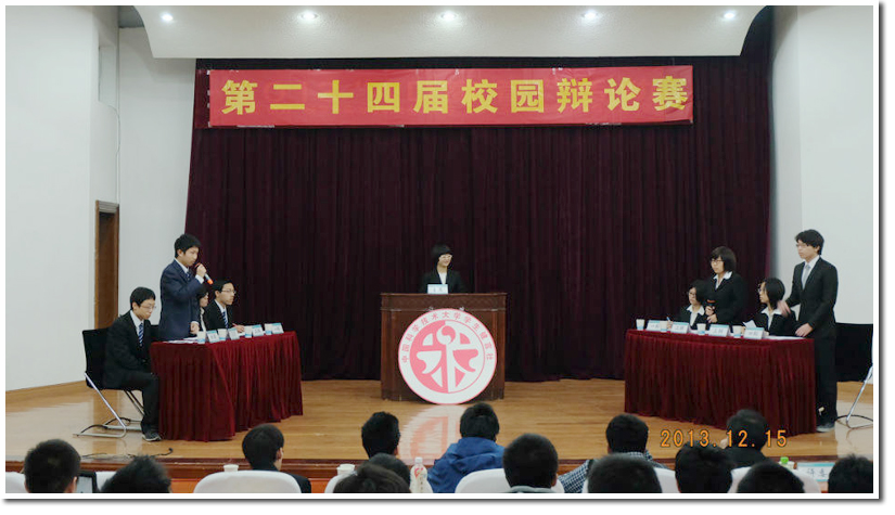 12月15日晚19:00,中国科大第24届校园辩论赛决赛在科大东区水上报告厅举行,工程科学学院辩论队二队(正方)与化学学院辩论队二队(反方)就“英雄不问出处/英雄要问出处”这一辩题展开激烈辩论。拨冗前来的评委有校团委张平老师,人文学院沈克祥老师,资深辩手罗琳同学,杜宇辰同学以及程治勋同学。在紧张激烈的决赛后,工院二队荣膺本次校辩论赛冠军。