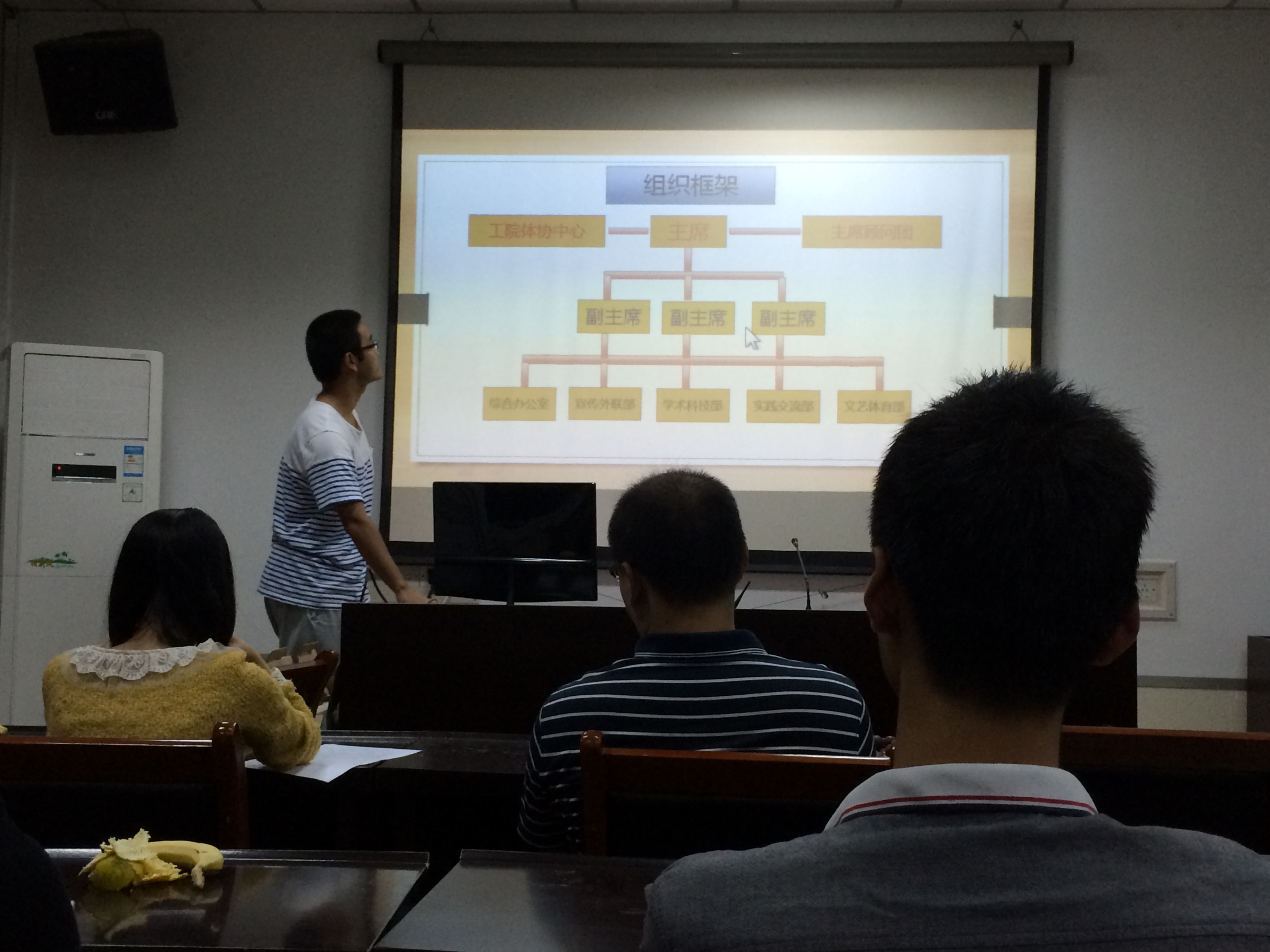 随后五个部门的部长分别对自己所属部门的工作及职能进行了详细的阐述,让新干事更加详尽地了解到每个部门并根据自己的爱好以及特长选择自己喜欢并且适合自己的部门,争取在以后研会的活动中将自己的长处发挥到最大,深切体会到研会“服务同学,锻炼自己”的宗旨。