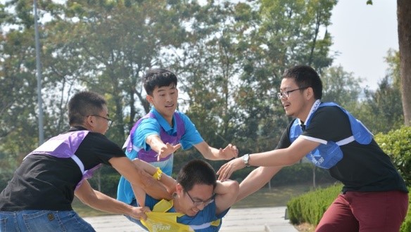 下午一点多,天气虽然有点热,但挡不住大家的热情。在空旷地区,大伙穿上准备好的背心,开始“撕名牌”游戏。“撕名牌”游戏考验的不只是个人的运动能力,还有团队的合作与勇敢。在充满欢声笑语的游戏中,同学们在阳光下奔跑着,挥洒着青春的汗水。