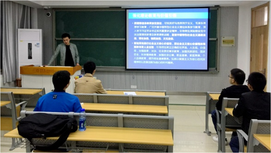 之后,支部书记梁雄伟又向大家介绍了“关于新形势下高校思想政治工作的意见”。作为大学生党员,应该深入学习习近平总书记系列重要讲话精神,深刻领会党中央治国理政新理念新思想新战略,坚定中国特色社会主义道路自信、理论自信、制度自信、文化自信;应该树立正确的世界观、人生观、价值观,切实践行社会主义核心价值观,把社会主义核心价值观体现到个人工作、学习和生活的全过程。