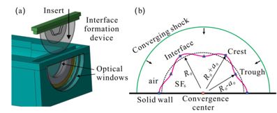 在实验研究中,激光惯性约束聚变、电磁套筒内爆、炸药驱动金属材料等方法一般耗资巨大、周期较长、诊断困难,难以大量开展,对相关的流动物理研究也带来极大困难。目前国际上最常用的实验研究手段是利用激波管设备产生激波并加载流体分界面,其中汇聚激波能够实现能量汇聚、产生更强压缩,更符合工程实际。因此,汇聚激波诱导的流体力学界面不稳定性实验研究一直是本领域的前沿热点和难点问题。