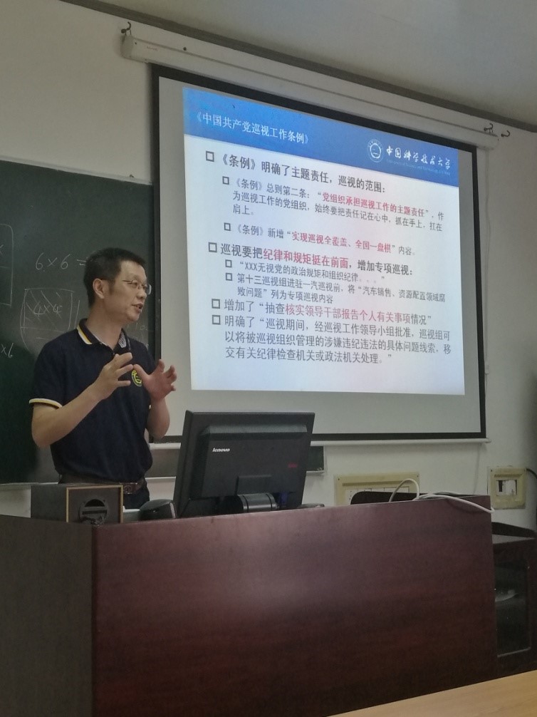 学院党委书记刘明侯给全体党员上了专题党课。他介绍了《中国共产党巡视工作条例》出台的背景以及内容,对《条例》的部分条款进行了详细的解读。接着就学习《关于巡视31所中管高校党委情况的专题报告》、《中央第四巡视组向必威betway西汉姆网页版 党委反馈专项巡视情况》等有关文件精神,谈了自己的认识和深刻体会,并对党的巡视工作的重要意义进行了阐述。