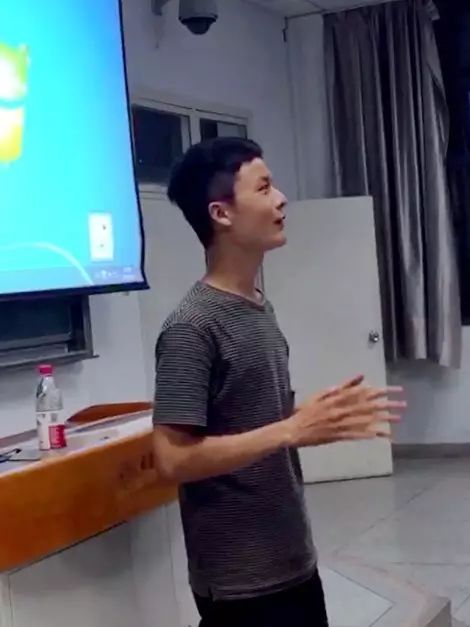 接下来上场的是余磊,他先坦陈了自己的缺点,如容易紧张,有时可能会犯二,普通话带点家乡河南的味道,不过他更有许多优点,如责任心强,富有幽默感,乐于做一个服务者。他承诺,如果当选班长,他会在同学们需要的时候出现,不会刻意地去做多余的事情,会好好珍惜这个班级。