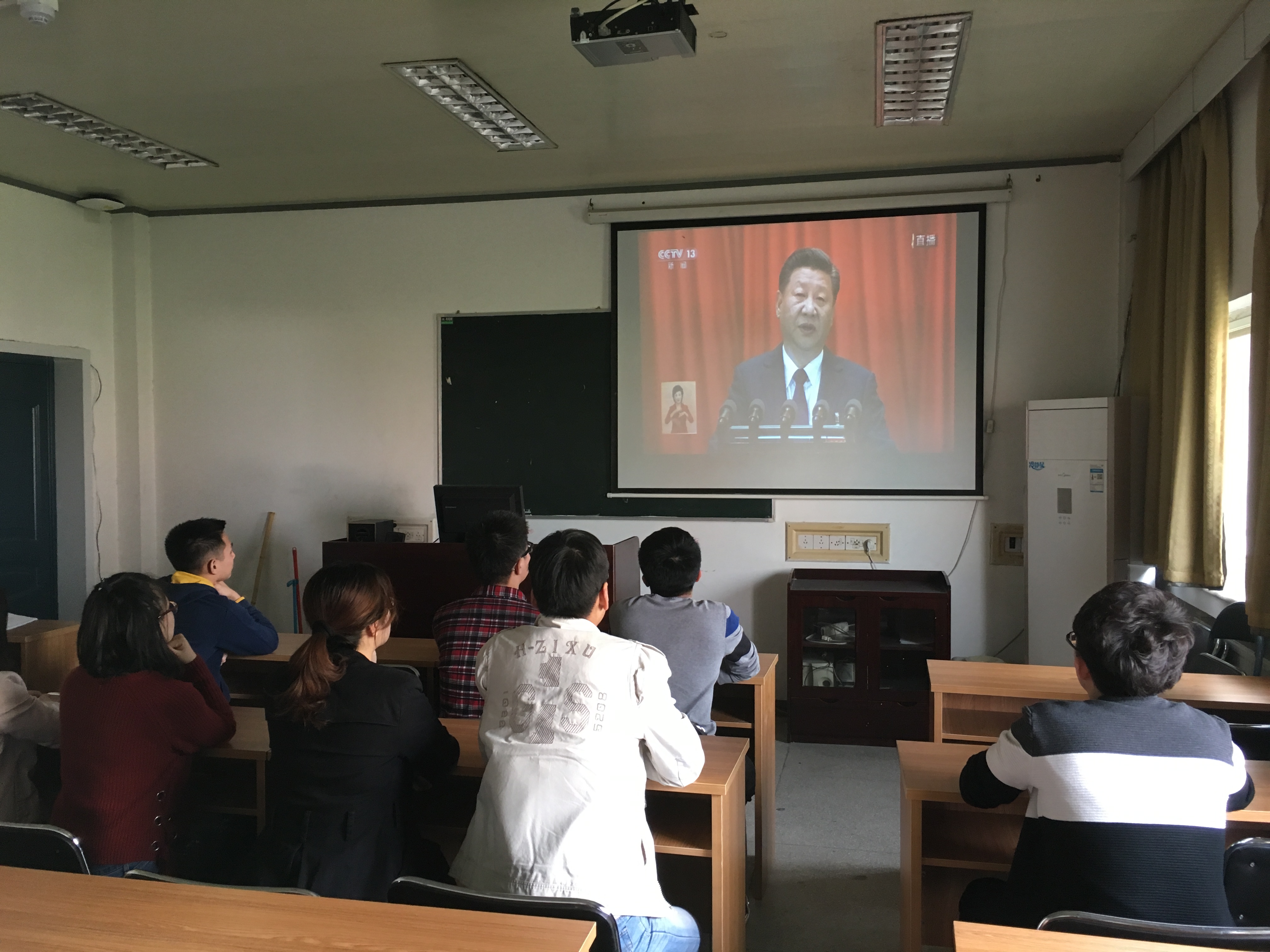 首先大家观看了中共十九大开幕会,领会习近平总书记重要讲话精神。开幕式观看结束后,大家对习近平总书记开幕式上讲话要点进行了回顾:中国共产党人的初心和使命,就是为中国人民谋幸福,为中华民族谋复兴。中国特色社会主义进入了新时代。我国社会主要矛盾已经转化为人民日益增长的美好生活需要和不平衡不充分的发展之间的矛盾。有事好商量,众人的事情由众人商量,是人民民主的真谛。把人民利益摆在至高无上的地位。党始终同人民想在一起、干在一起。同志们对热点进行了热烈讨论,纷纷表示很受振奋,要更加认真学习,发挥党员先锋模范带头作用,宣传党的政策。