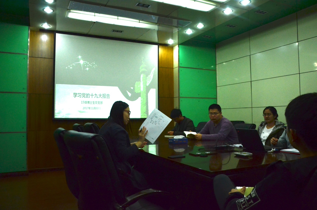 11月3日,工程科学学院5系2015级博士生党支部在力学一楼427会议室举行了学习党的十九大报告活动。会议由工程科学学院5系2015级博士生党支部书记冯佳宾同志主持。