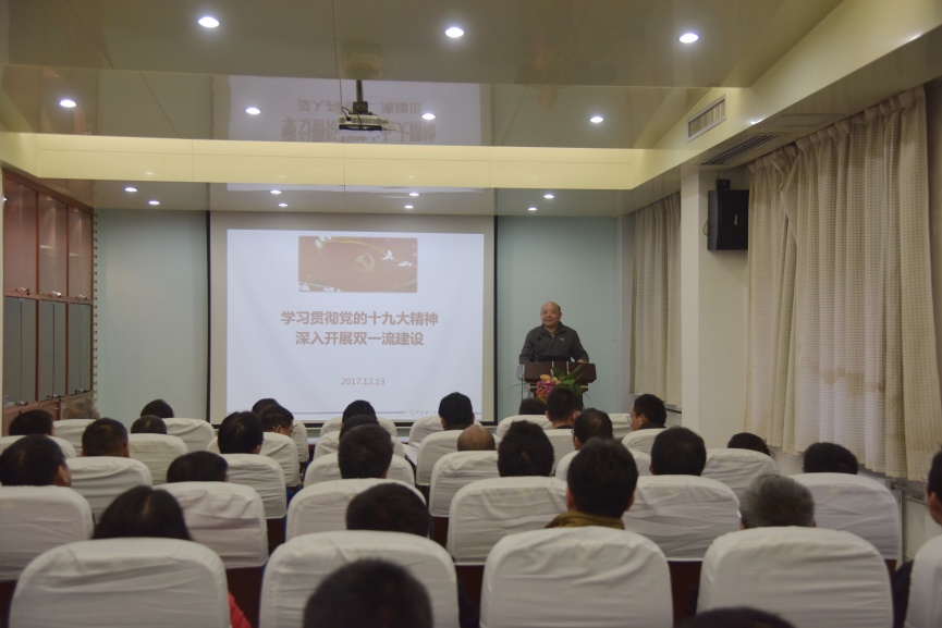 为深入学习贯彻党的十九大精神,按照学校党委的要求和工作部署,12月13日下午,工程科学学院执行院长陆夕云教授在力一楼239会议室作“学习贯彻党的十九大精神,深入开展双一流建设”主题报告,为近代力学系全体教工解读十九大精神。伍小平院士及近代力学系全体教职工参加了报告会。宣讲报告会由系党总支书记赵凯主持。