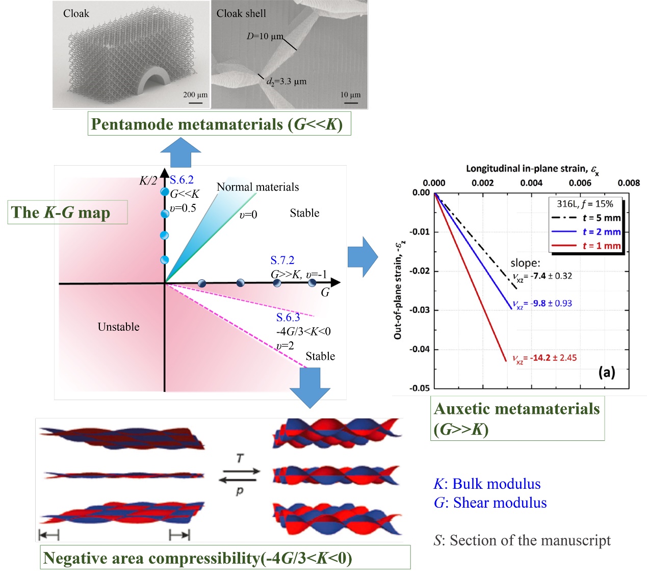 基于剪切模量,体模量和泊松比的力学超材料分类系统概略图