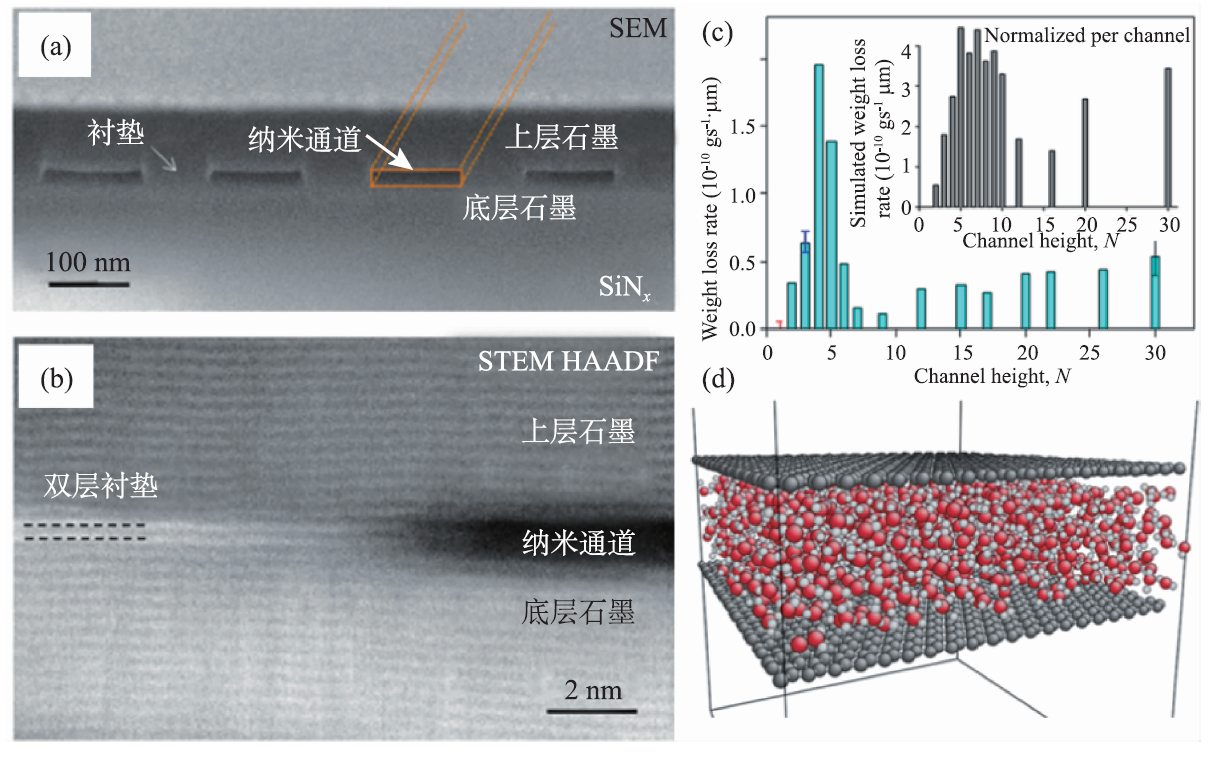 石墨烯组装制备的纳米毛细通道、实验及模拟得到的水输运效率