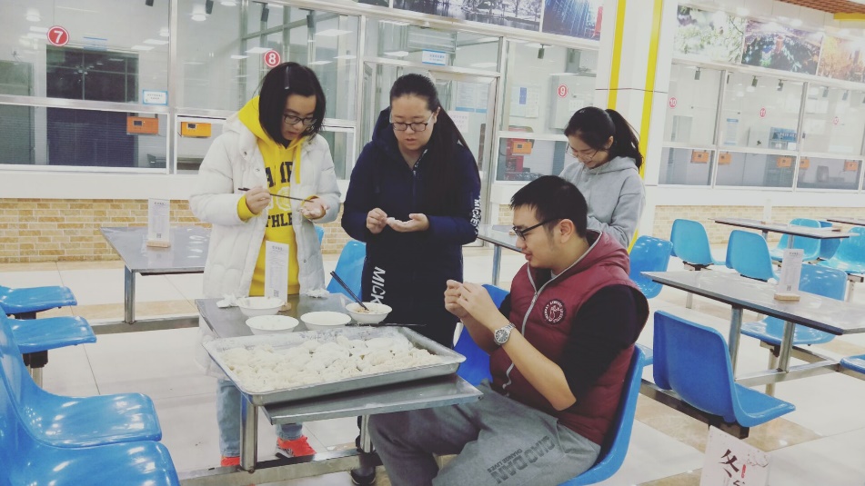 2017年12月30日周六下午,9系2016级本科班学生相聚金桔园食堂,一块撸起袖子包饺子,大家一齐动手,其乐融融。