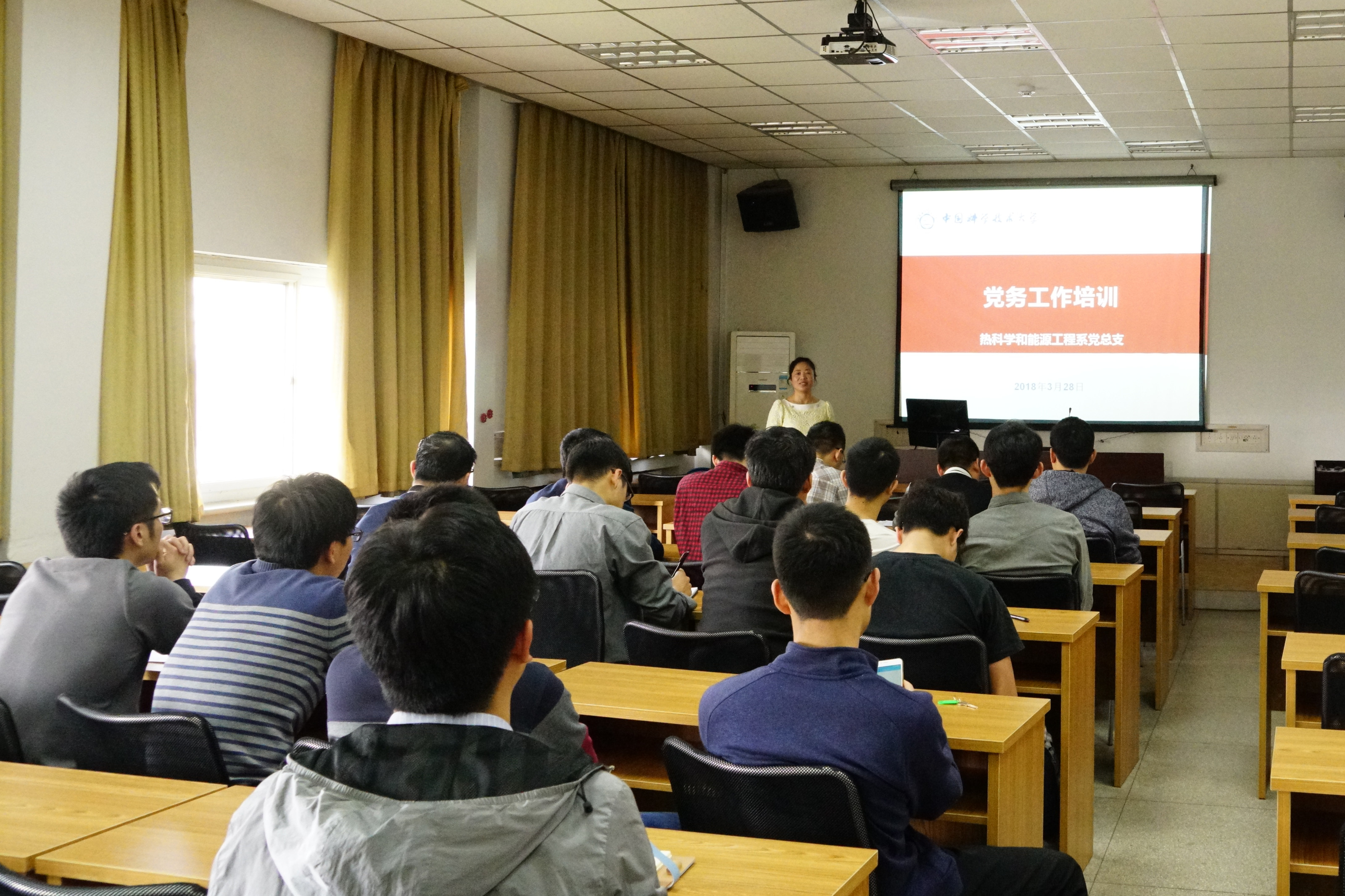 为进一步加强基层党组织建设,结合研究生党支部的工作实际,在热科学和能源工程系党总支胡芃书记的支持下,3月28日下午,系挂职党总支书记牟玲为全系研究生党支部委员举办了一次党务工作培训。全系7个研究生支部委员共22人参加了培训会。