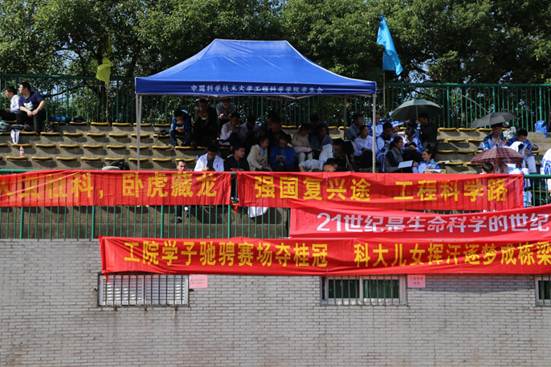 运动场上健儿拼搏挥汗,观众席上同学激情助阵。虽然他们不能进入运动场与健儿们并肩作战,但他们的心与健儿们紧紧联系在一起,为他们的胜利而欢呼雀跃,因他们的失误而遗憾痛心,为他们的奋力拼搏而感动鼓舞。观众席上工院同学的呐喊助威,激励着工院健儿们尽全力去拼搏,不为自己、集体留下遗憾。