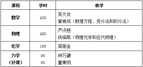 以我们近代力学系58级为例,物理、数学都是甲型的,要学5个学期。一般大学力学专业不学的化学课,我们也要学一个学年。此外,还有从经典力学到现代物理的物理实验,从无机到有机的化学实验。
