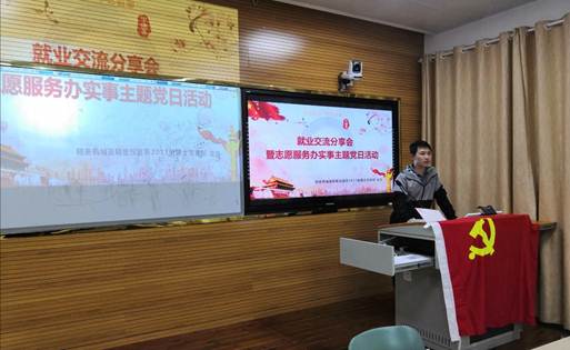 接着,叶宇同志就公务员考试、科研院所的招聘情况进行了介绍。他分析了选调生近几年的招录情况、国家与地区的相关政策并介绍了备考和报名的注意事项等。他提醒同学要及时关注公务员考试的信息,填报合适的岗位,增加成功的几率。