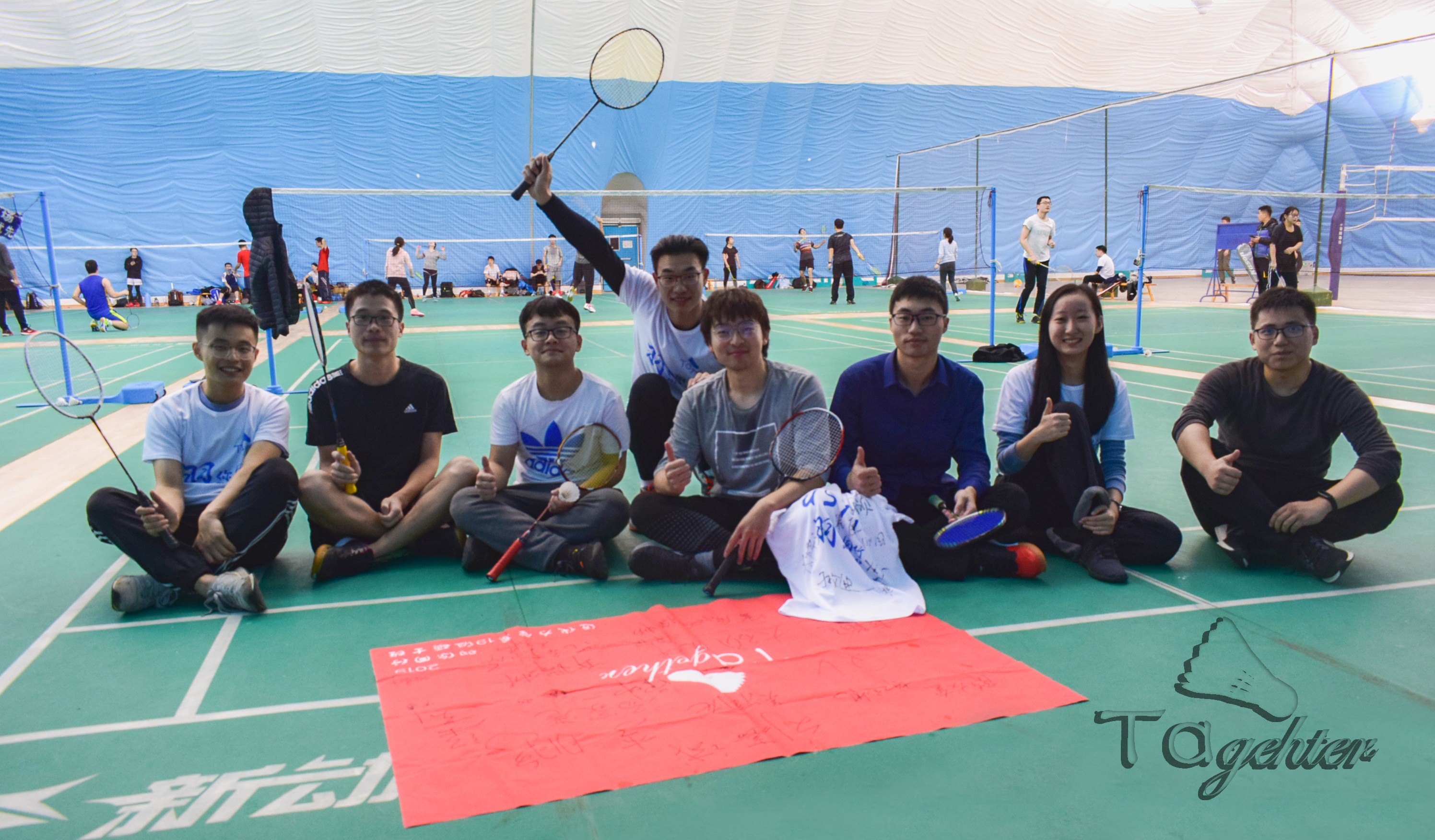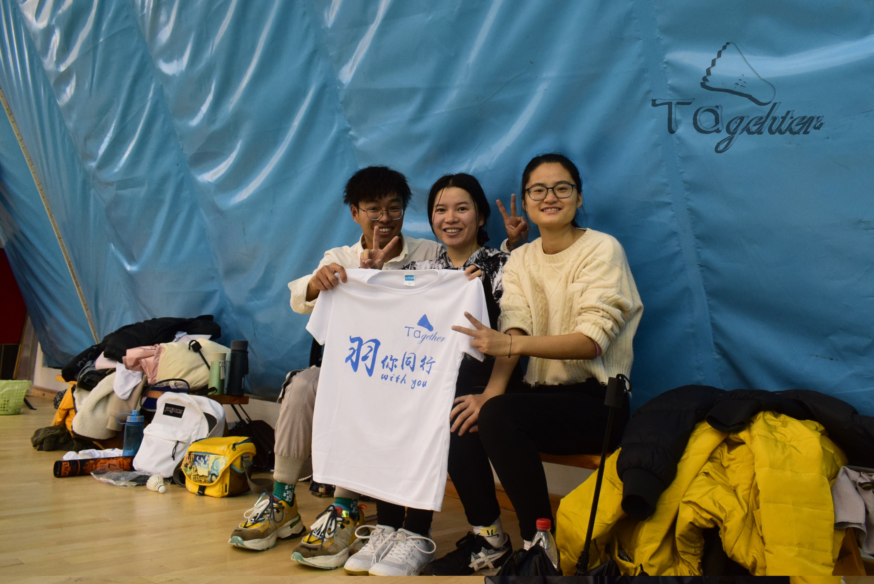 本次羽毛球交流活动主题定为“羽你同行”,来自“与你同行”一词,寓意着班团集体共同进步。主题Logo中采用羽毛球图案与“tagether”字母组成,其中羽毛球体现主体运动,“tagether”来自“together”单词, “to”改为“ta”,暗指搭档“ta”。羽毛球图案为“羽”,“ta”可理解为“你”,“Together”有“同行”之意。logo含义正是表示主题“羽你同行”。