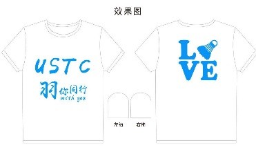 在“羽你同行”主题文化衫设计中大家集思广益,最后设计出三款样式。每款都带有“羽你同行”字样,第一款带有“USTC”与“LOVE”字母,表示对学校和此次活动的热爱;第二款与第三款背部图案不同,男生图案为男生服饰,女生图案为女生服饰,设计初衷为搭档装。