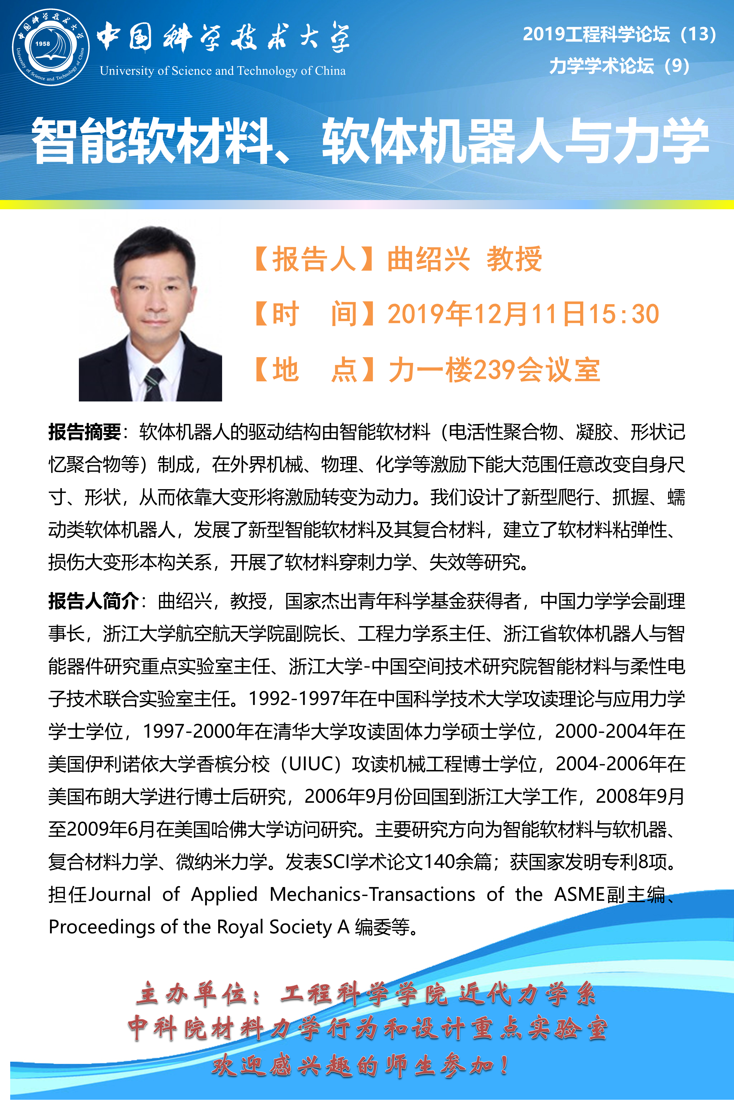 2019工程科学论坛(13)“智能软材料、软体机器人与力学”报告会