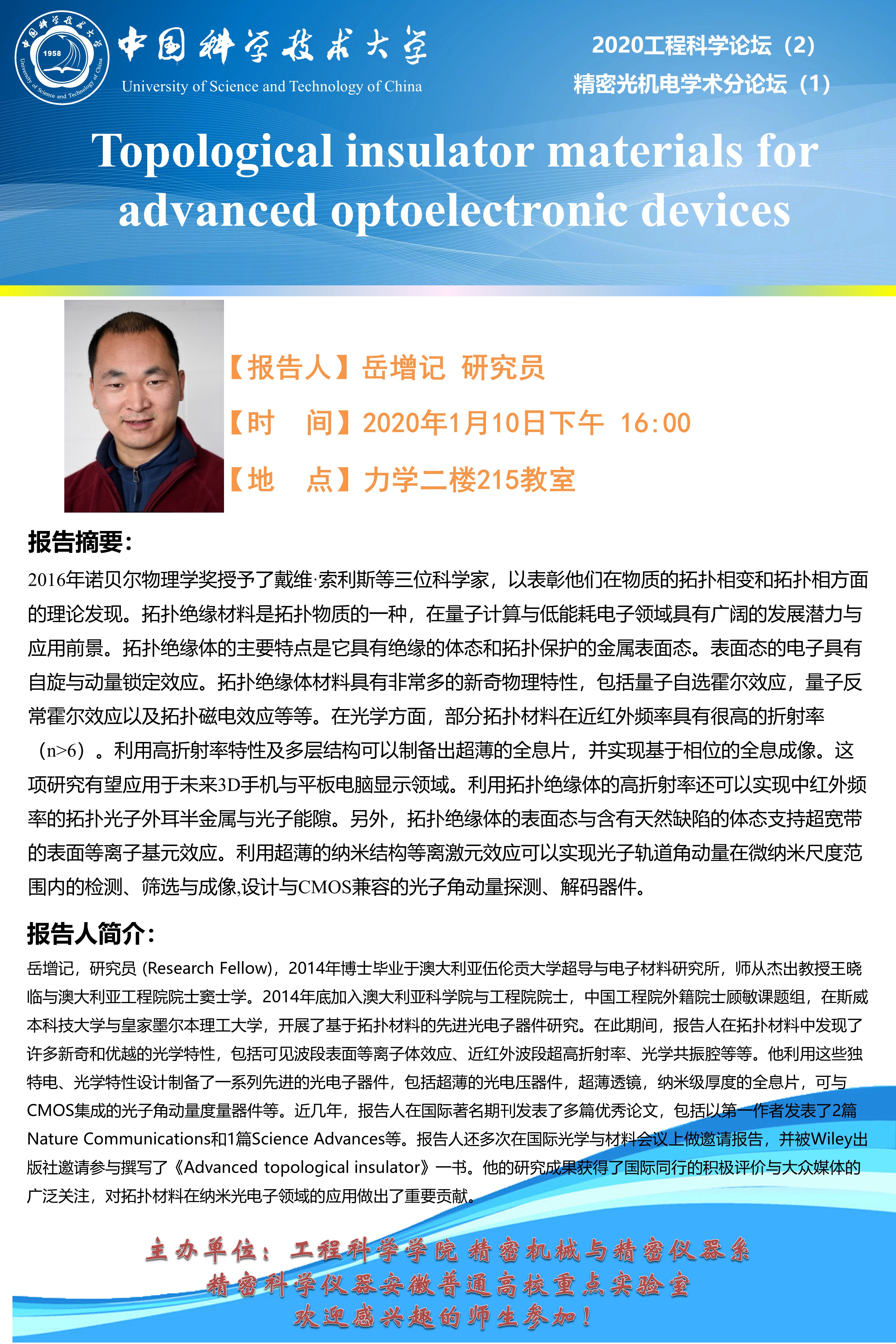 2020工程科学论坛(2)"Topological insulator materials for advanced optoelectronic devices"报告会