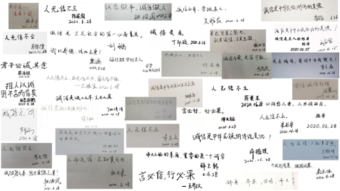 会议最后,张老师向同学们提出殷切希望,希望各位同学珍惜人格、品质,不要违规逾越,小事失节而酿成大错,并提出诚信签名的倡议,作为每位同学坚守诚信、以德立身的见证,班级同学积极参与了诚信签名。