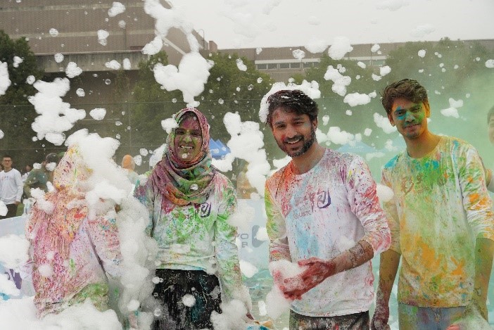 活动还吸引了众多留学生的参加,来自计算机学院的HamXa和他的同学说,能够参加这次活动非常高兴,他们非常喜欢彩虹狂欢这个游戏,大家可以忘却各种压力,尽情的玩耍。