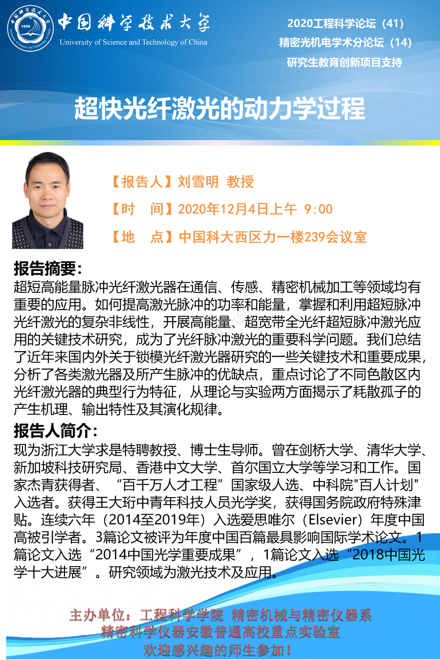2020工程科学论坛(41)“超快光纤激光的动力学过程”