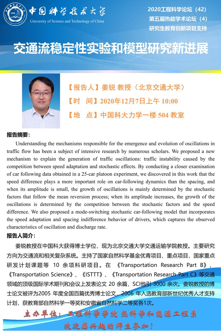 2020工程科学论坛(42)“交通流稳定性实验和模型研究新进展”