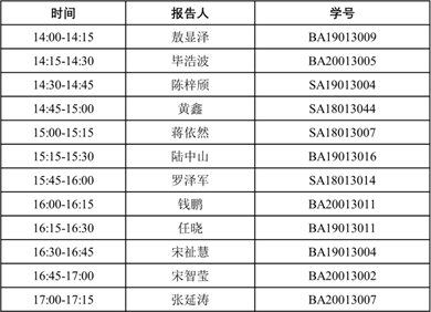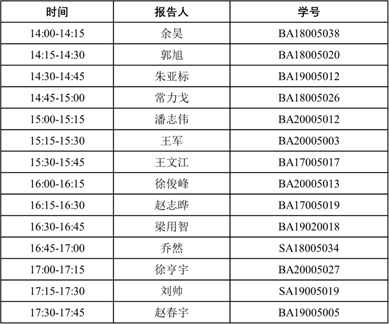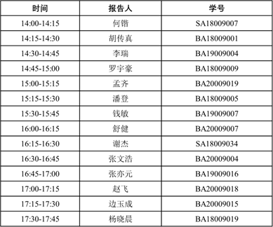 时间:2020 年 12 月 18 日(星期五)下午地点:西区第三教学楼 3B103 会议室内容安排:学生报告人口头报告和评奖