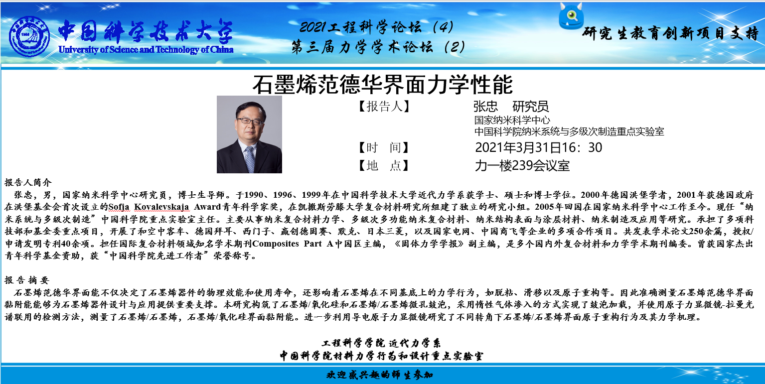 2021工程科学论坛(4)“石墨烯范德华界面力学性能”