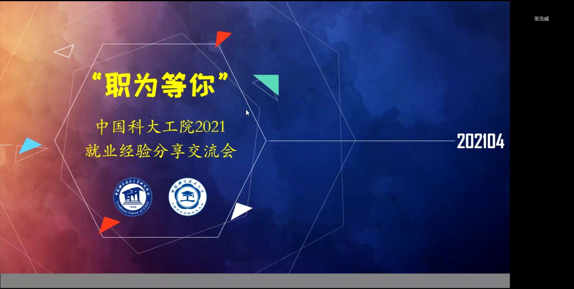 2021年4月8日晚7点,“职位等你”-中国科大工院2021年就业经验分享会在腾讯会议上成功举办。本次就业就业经验分享会是中国科大研究生会“职为等你”就业经验分享系列活动的子活动,由共青团必威betway西汉姆网页版 工程科学学院委员会主办,工程科学学院研究生会联合承办。分享会采用线上和线下共同宣传的方法,共计四轮宣传,仅微信端阅读量达到500。在线会议室参与人数150+,在各学院同类型就业经验分享会中领先。