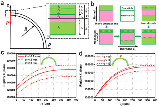 寄居蟹左螯的外骨骼分为五层。同样,这些层状结构的局部力学性能与微结构和化学成分也密切相关。特别是结构中三维正交排列的己丁质纤维通过桥接和拔出机制有效地提高了材料的断裂韧性。