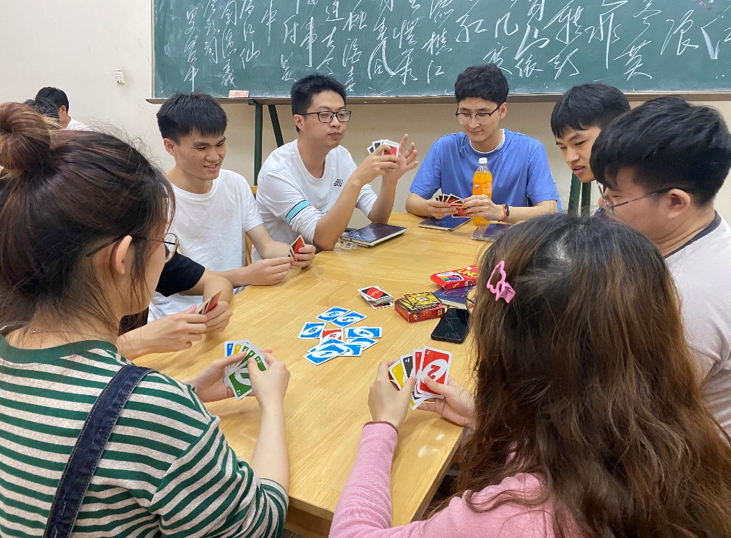 活动开展前,班委调查了班级同学的心理状况,发现班级很多同学都存在着学业、科研等方面的压力。为缓解大家的心理压力,班委听取了班级同学的的提议,决定开展形式多样,内容丰富的桌面游戏活动,并为参与的同学们准备了精美的奖品。