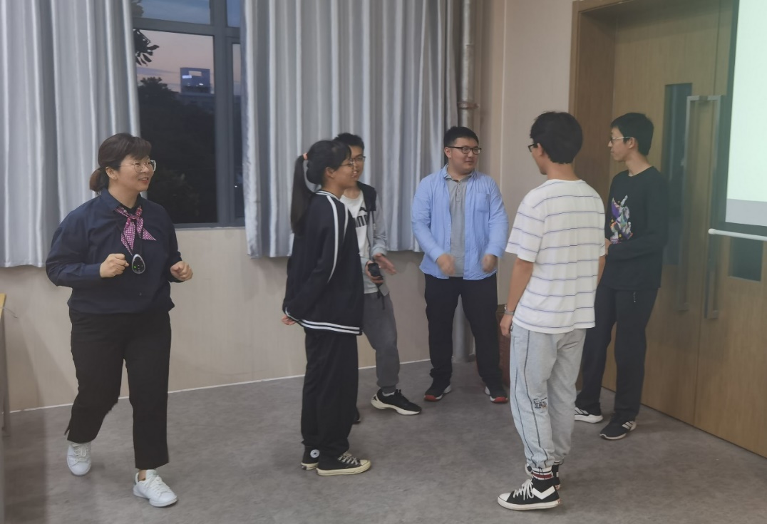 刘小倩是一位很有亲和力的老师。活动前她通过与学生的交谈了解到,虽然一个班级的同学已共同学习生活了一年,但是同学之间仍然有很多人互不相识。刘老师通过随机分组的游戏活动,活跃了班级气氛,也让小组成员重新认识彼此。