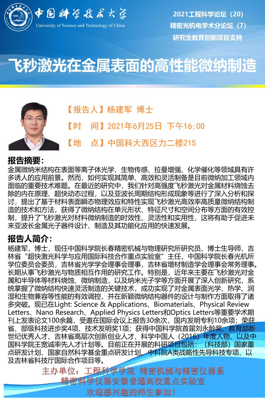 2021工程科学论坛(20)"飞秒激光在金属表面的高性能微纳制造"