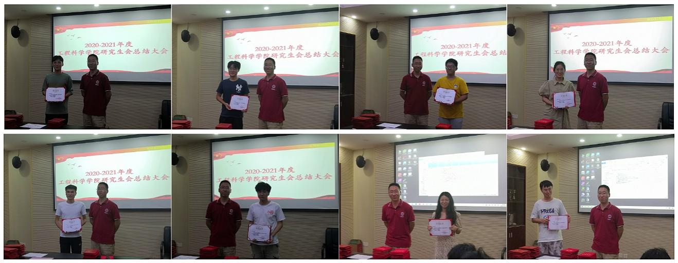 依据述职评议结果,王储为对研究生会建设作出积极贡献的同学颁发了“工程科学学院优秀学生干部证书”,以示表彰。