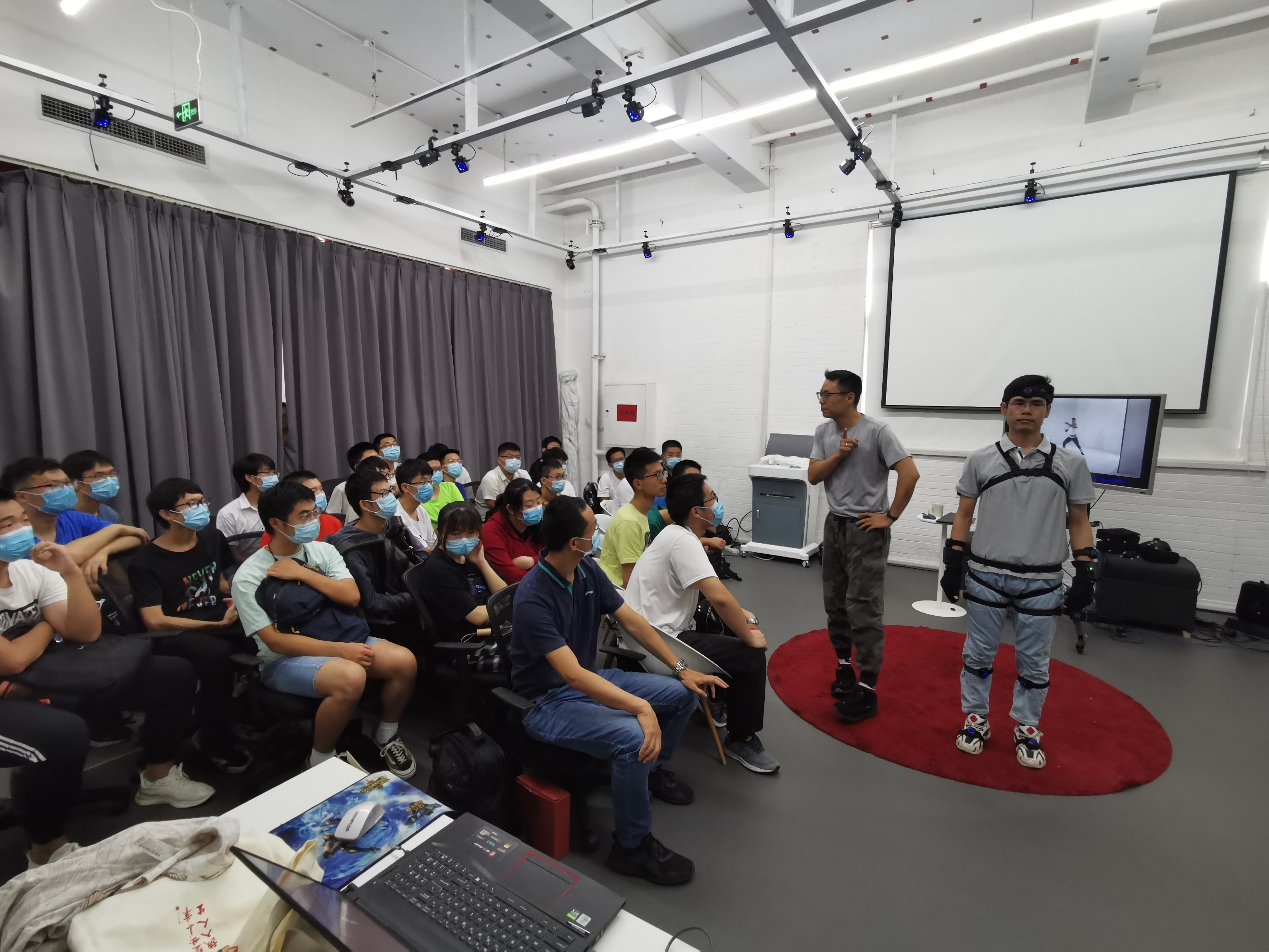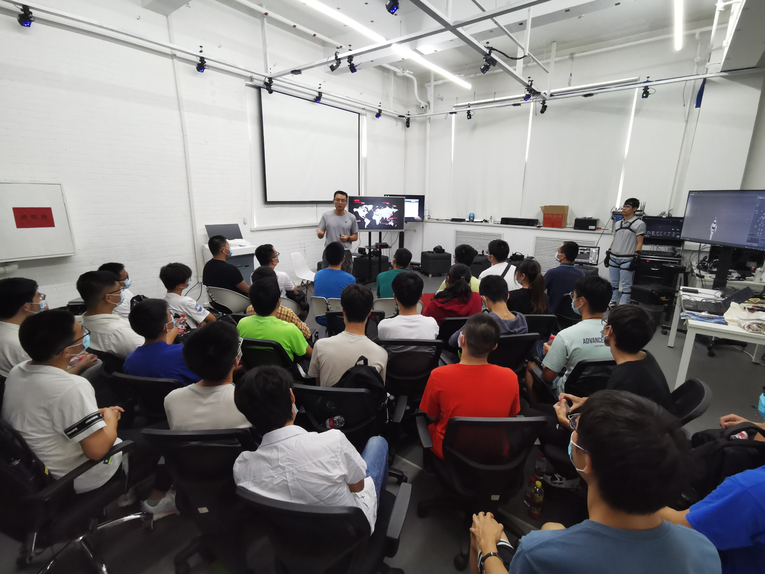 进入诺亦腾办公楼,映入眼帘的诸多健身器材瞬间颠覆了同学们对科技创新企业的刻板印象。公司将上下游技术人员紧密联系在一起的流程协作式办公间,也让同学们大开眼界。通过戴博士的介绍,同学们了解到,北京诺亦腾科技有限公司是一家在动作追踪与动作捕捉领域具有国际竞争力的公司,其中不乏中国科大杰出校友们的贡献。紧接着,同学们在会议室里观看了该公司的动作捕捉产品展示。穿戴上无线传感器的工作人员在现场做的一系列动作,都被实时精确地捕捉并传输到电脑上进行数字孪生。动作捕捉系统灵动迅捷的反应,不禁叫人直呼神奇。
