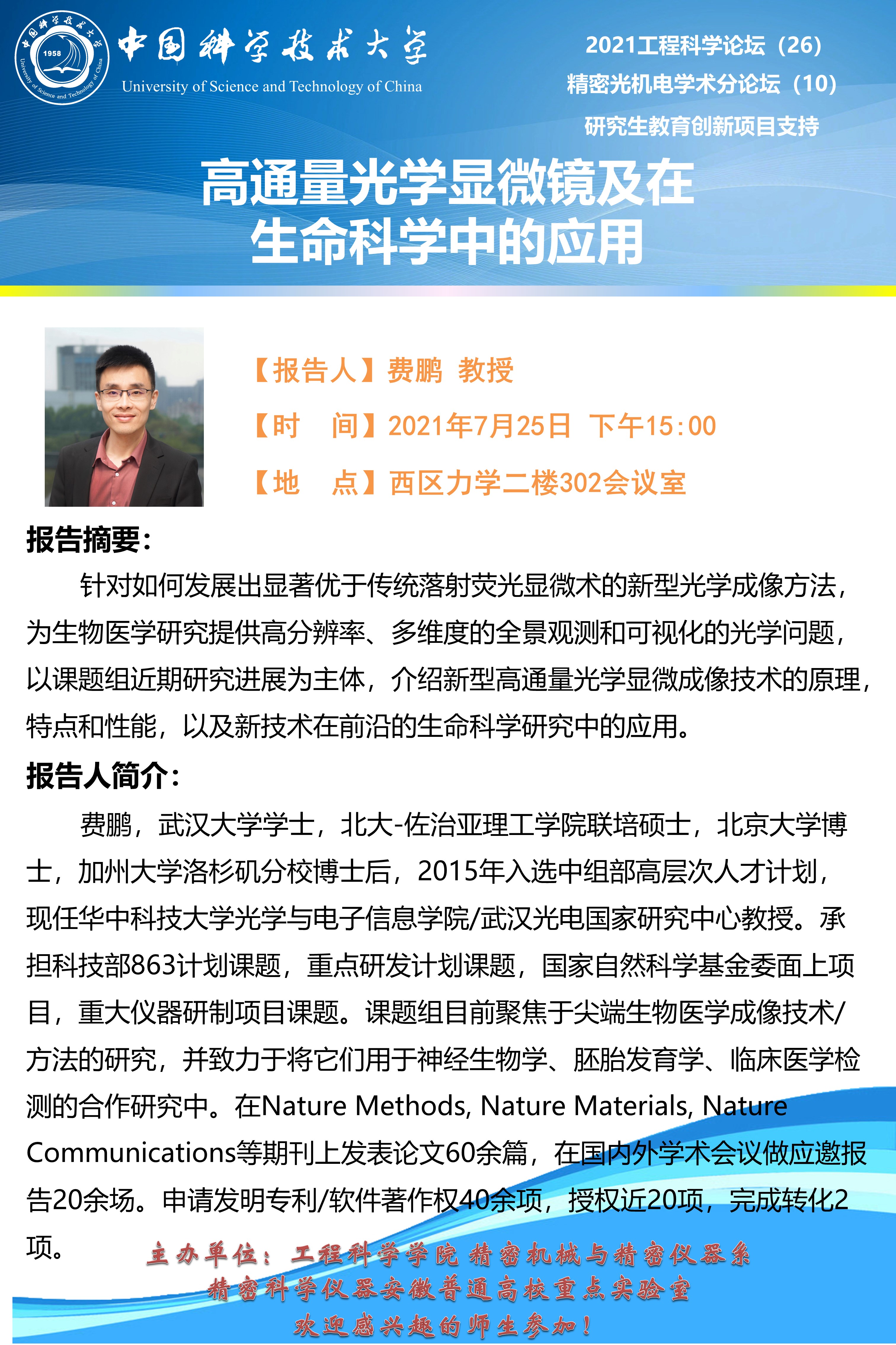 2021工程科学论坛(26)“高通量光学显微镜及在生命科学中的应用”