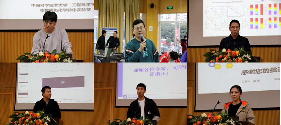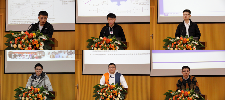 下半场,刁瑞、周旭、王储、张德斌、张粜和温馨等同学分别介绍了“生物油蒸馏残渣的气化机制及行为预测”、“氩热等离子体射流特性的大涡模拟研究”、“生物质热解气选择性冷凝的实验研究”、“界面传热下傅立叶定律的完备性研究”、“热障涂层对叶片表面气膜冷却性能影响的实验研究”和“一种基于温差与聚光光伏发电的新型PV/T系统的研究”。