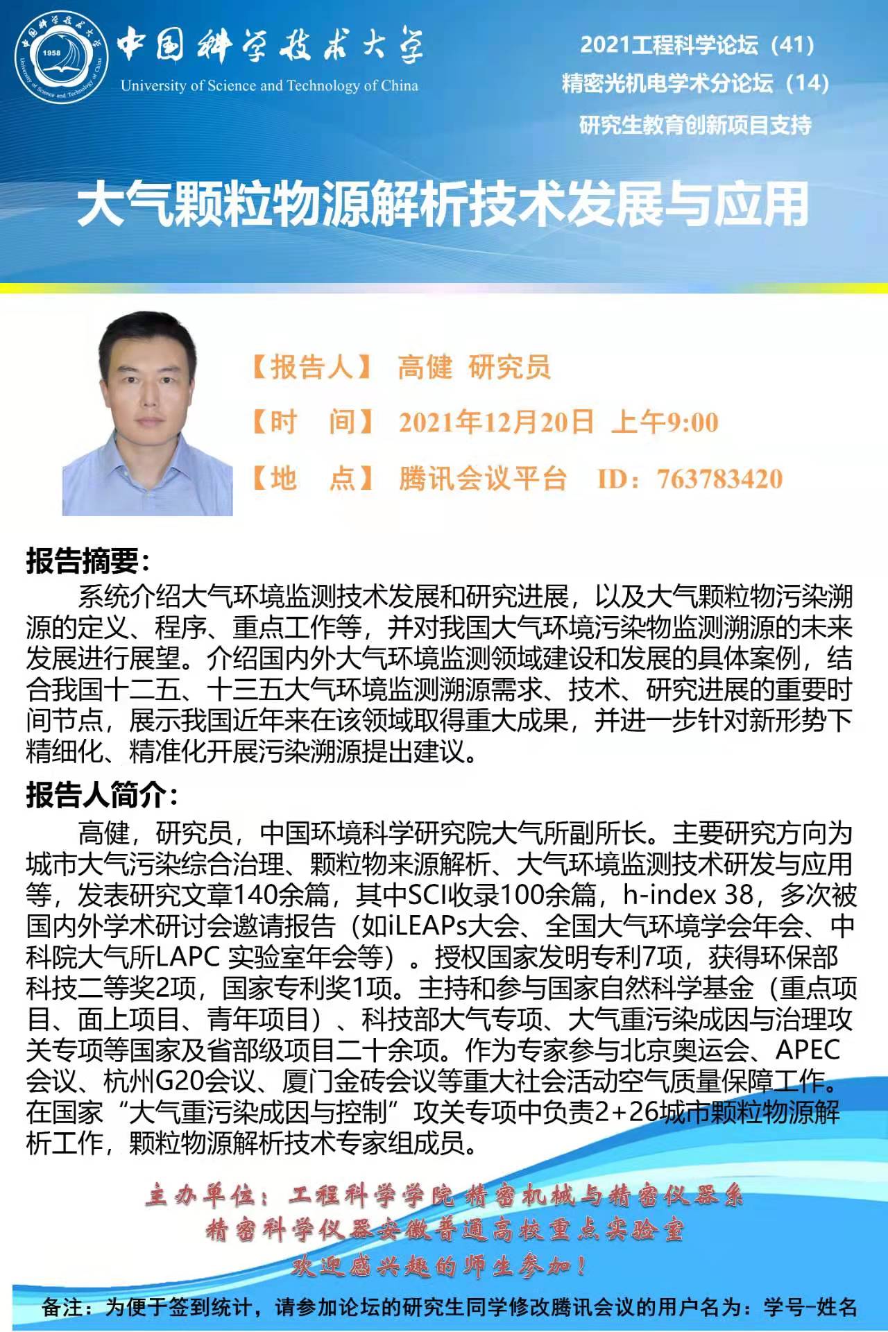 2021工程科学论坛(41)“大气颗粒物源解析技术发展与应用”