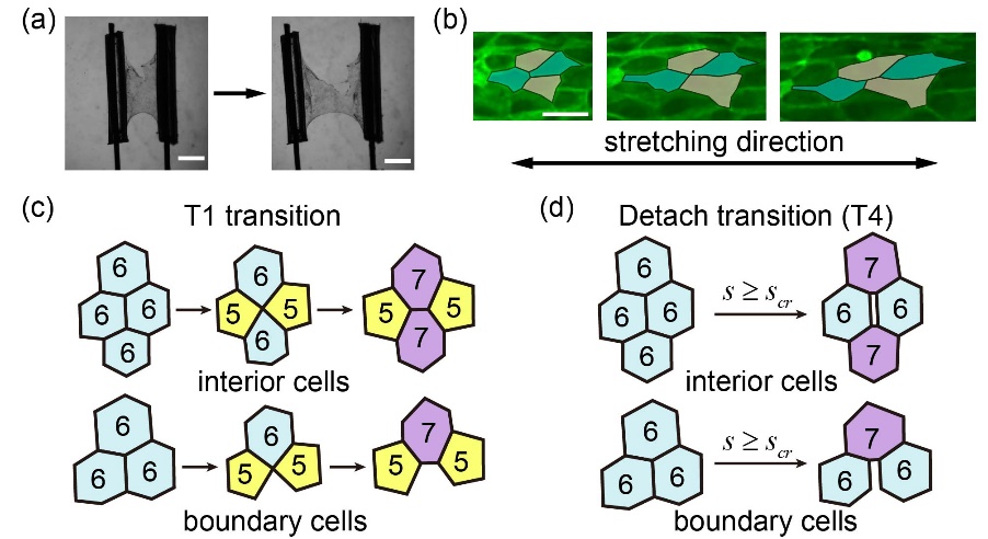 图3.细胞间重排布(T1转变)和细胞间脱粘(Detach转变)