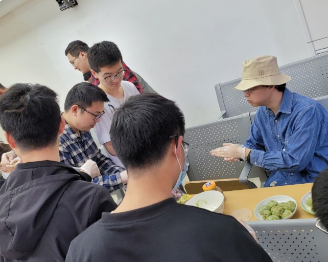 捏取一块拌了艾草粉的糯米团,在手中一搓、一按,艾草的清香和糯米的香甜便从指尖飘散开来,再和入一勺豆沙和肉松,一只圆墩墩、清亮亮的青团就做好了。在制作中,同学们不仅体会到了自己动手的乐趣,更深入地感受到传统文化的美和内涵。