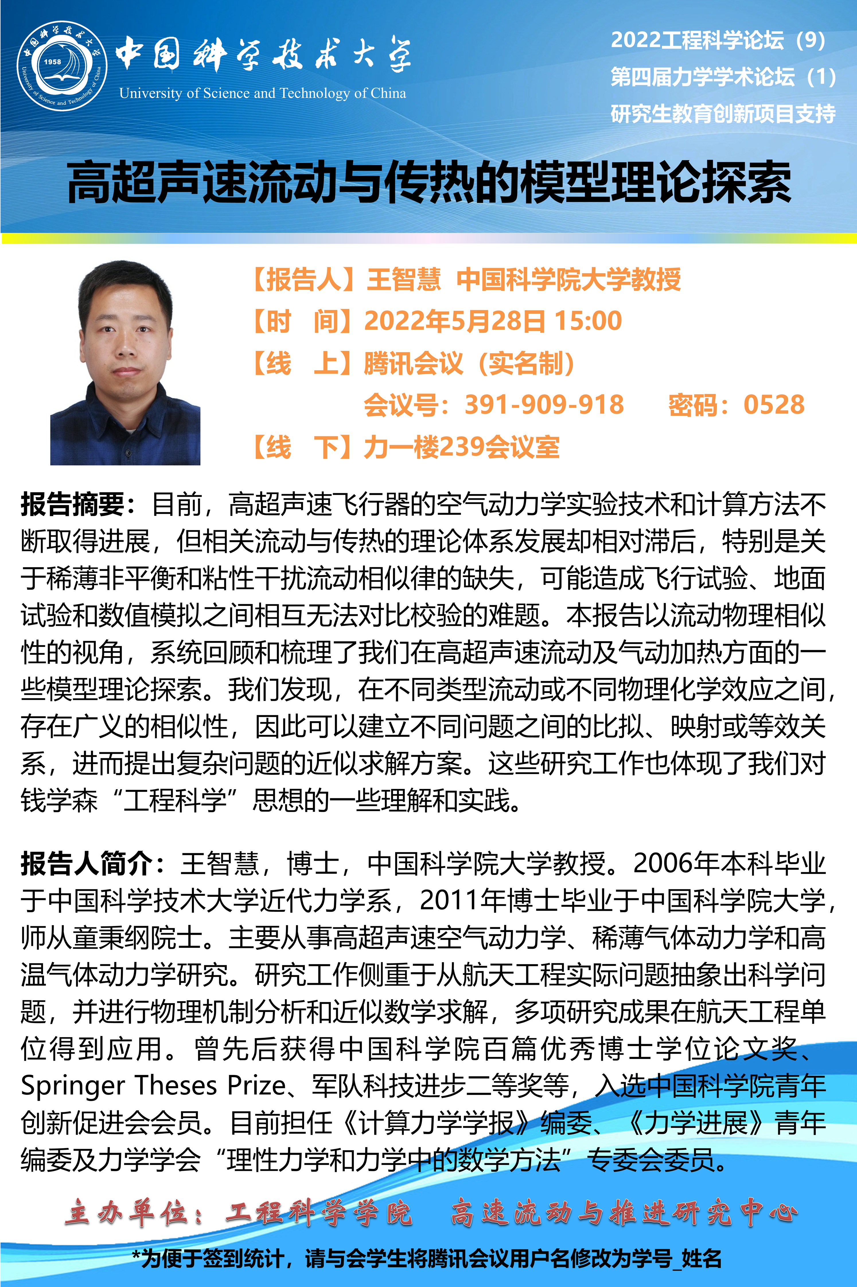 2022工程科学论坛(9)“高超声速流动与传热的模型理论探索”