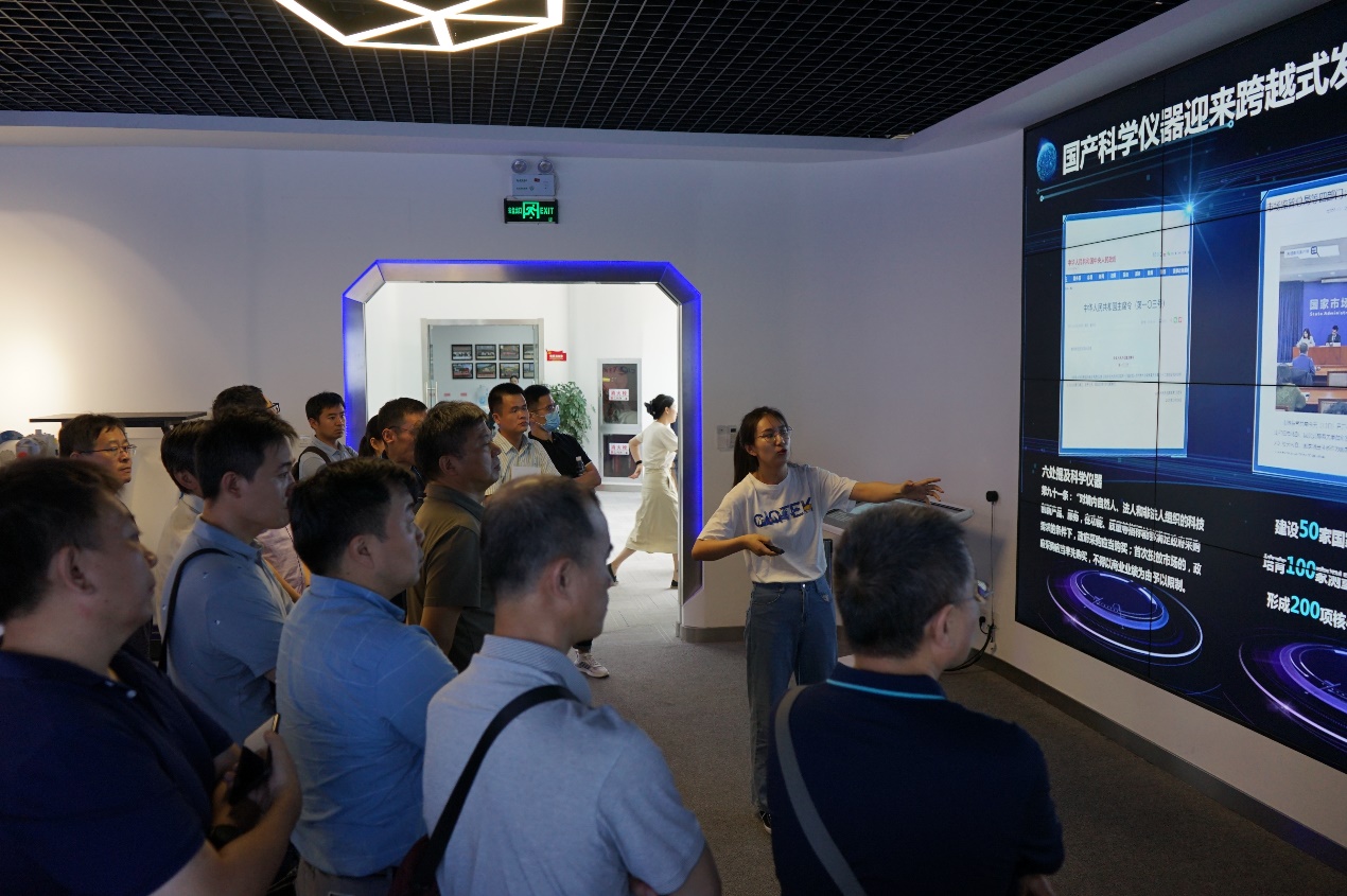 下午,大家先来到2008级少年班校友贺羽博士创办的国仪量子(合肥)技术有限公司参观学习。贺羽校友牢记习近平总书记2016年考察科大时的当面嘱托,“把创新作为最大政策,奋起直追、迎头赶上”,胸怀“为国造仪”初心,投身创业,致力于量子精密测量、量子计算等技术和高端科学仪器的自主研发和产业化,倾力解决国外高端科研设备封锁的“卡脖子”难题、打造全球领先的量子测量先进仪器企业。大家就如何使用公司开发的高端仪器设备,和自身的科研工作相结合进行了深入探讨。