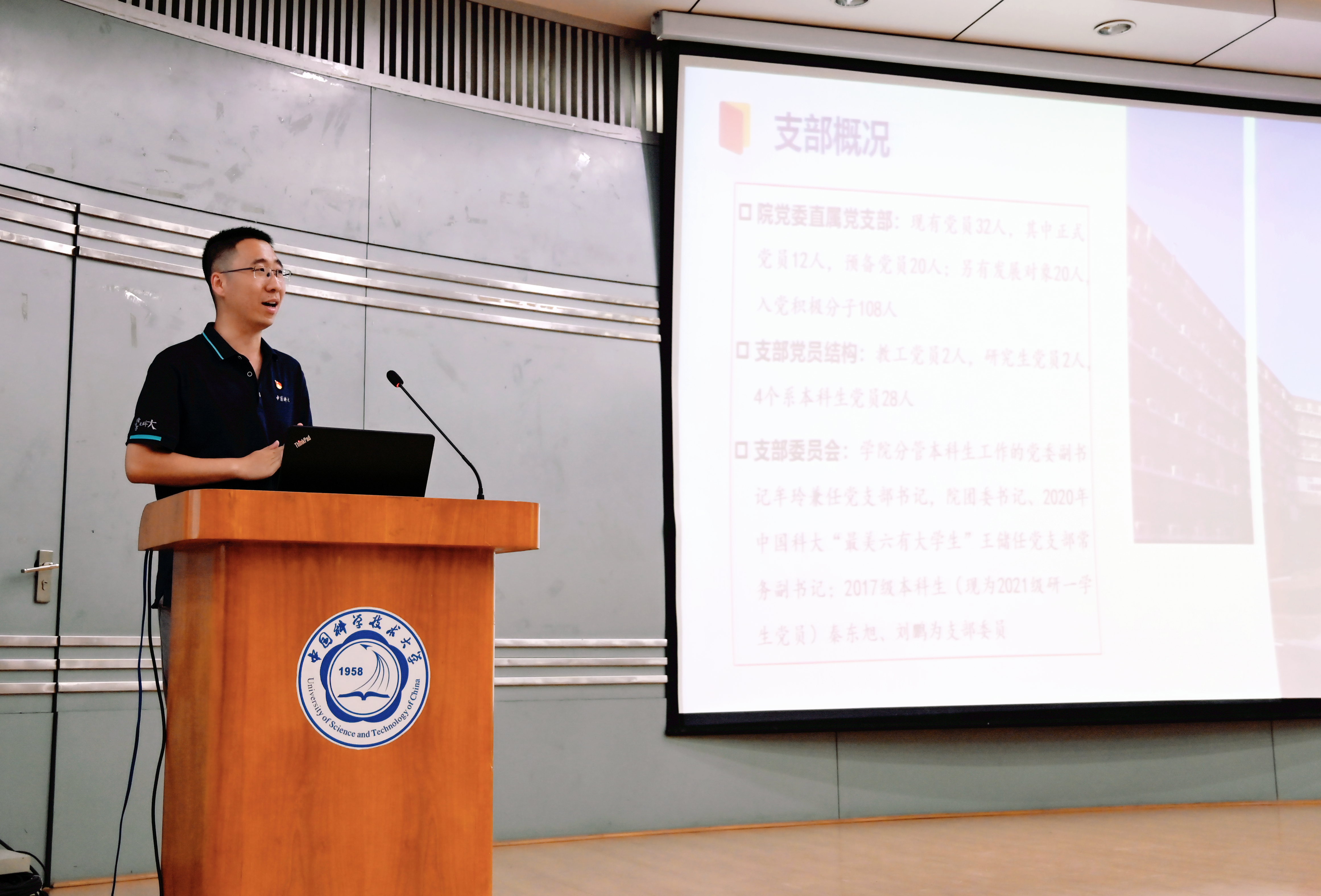 在党员教育培训环节,“安徽省高校先进基层党组织”“首批校级党建工作样板党支部”中科院材料力学行为与设计重点实验室党支部书记王奉超,“首批校级党建工作样板党支部”院本科生党支部常务副书记王储作交流发言。他们分别从党建引领科研、党建与中心工作深度融合、支部共建,开展党、团、学联动,发挥“头雁”功能,提升理论学习的浓度、主题党日的鲜味、组织生活的实效等方面做了分享。