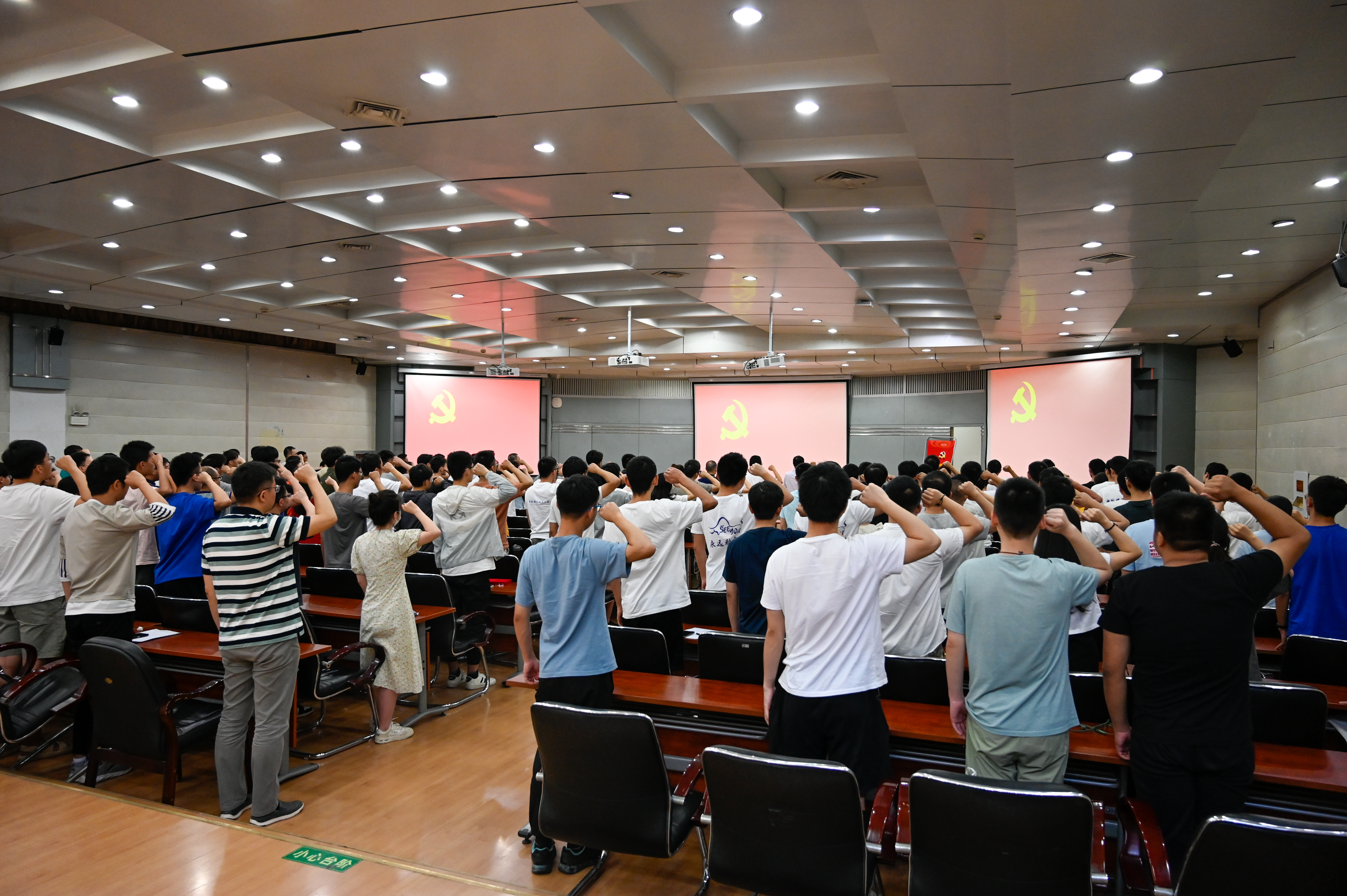 “我志愿加入中国共产党……”,会议最后,由学院党委副书记赵凯领誓,全体新党员面对党旗庄严宣誓,现场老党员重温入党誓词。一句句誓词铿锵有力,震撼心灵,催人奋进。